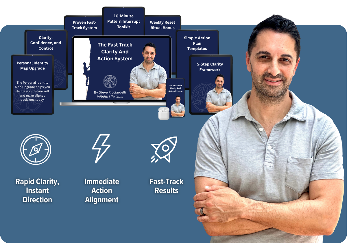 I’m Steve Ricciardelli—Special Forces veteran, startup executive, and mental performance mentor. I built and tested this method based on real-world experience in environments that demand clarity, resilience, and results. After hitting my own wall with burnout and disconnection, I realized the problem wasn’t motivation—it was identity. Everything you’ll learn is based on what actually worked to reset my direction and rebuild from the inside out.