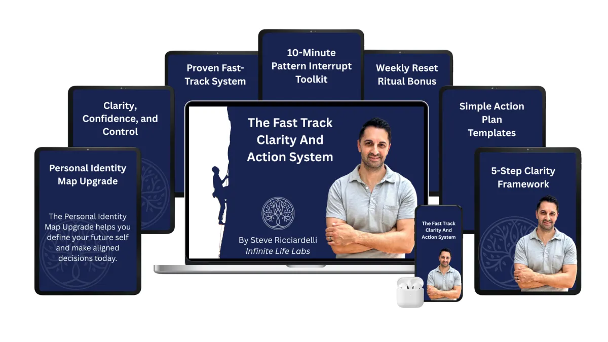 After 20+ years leading in high-stakes environments—from Special Forces to tech startups—I saw the same problem over and over: people pushing harder when they actually needed to reset and realign. That’s what led me to create The Fast Track Clarity And Action System: a simple, 5-step process that gets to the root. It’s not another tactic. It’s not about doing more. It’s about finally shifting the one thing that changes everything—identity. Once you reset that, clarity and momentum return fast. This is the most direct, no-fluff way to get back in control and back on track—for good.
